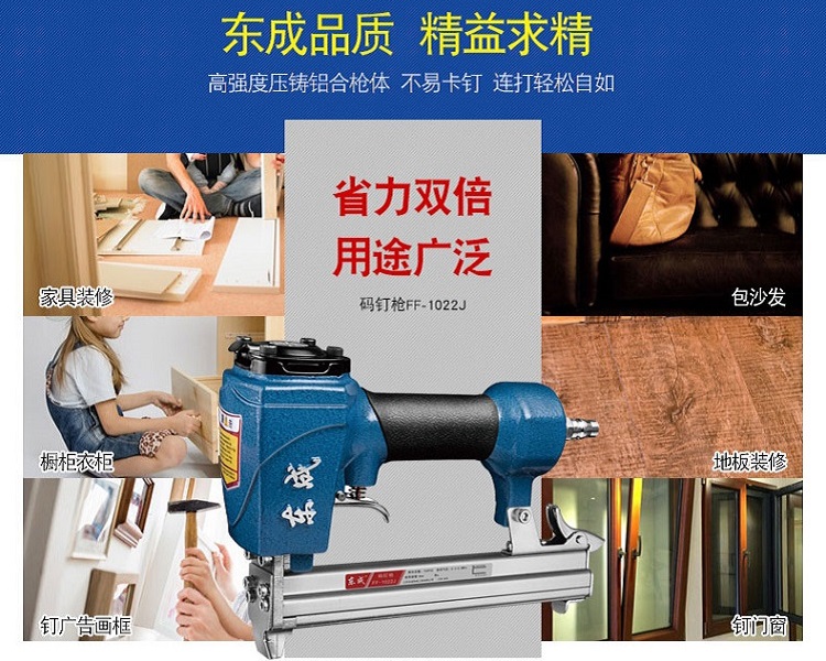 東成氣動碼釘槍FF-1022J東成槍具適用于家居裝修、包沙發(fā)、櫥柜衣柜、地板裝修、釘廣告畫框等多場景