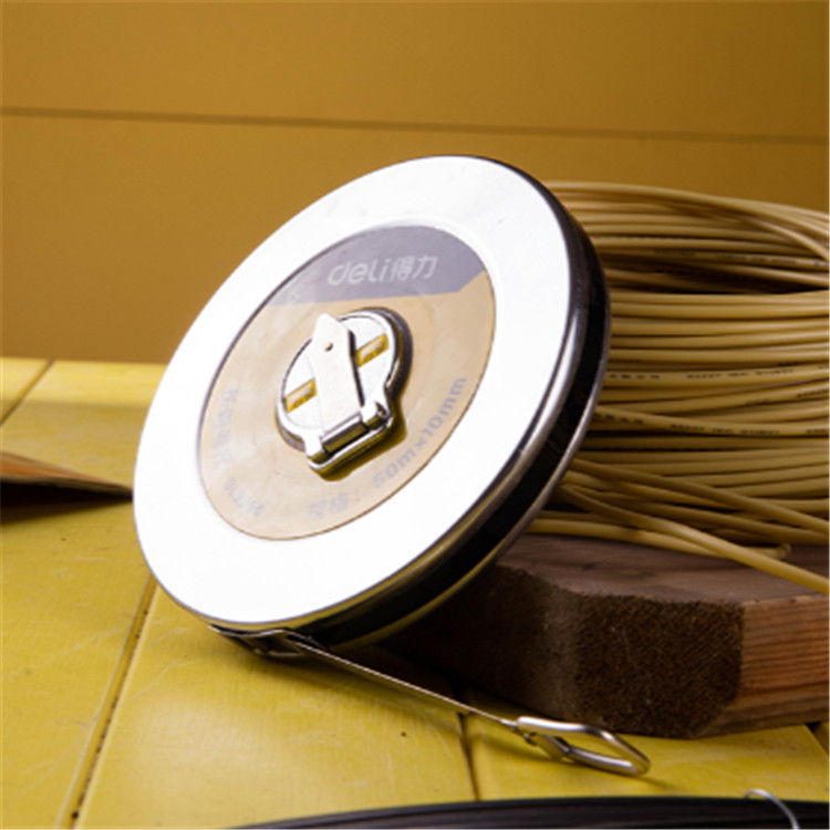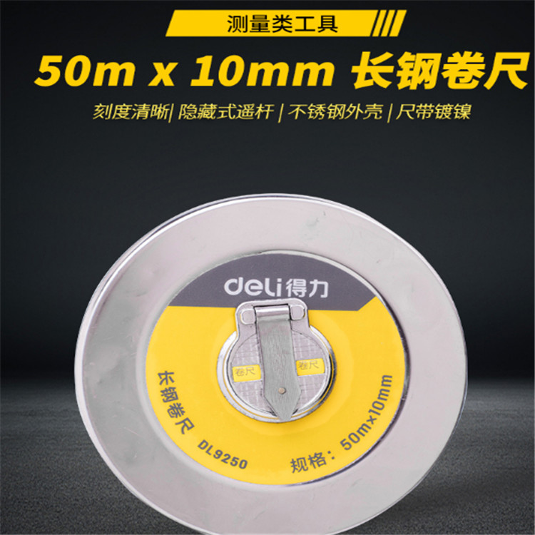 得力長鋼卷尺50m×10mm 不銹鋼外殼測量工具