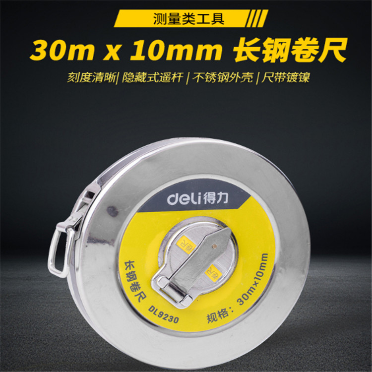 得力長鋼卷尺30m×10mm 鋼帶拉尺測量工具