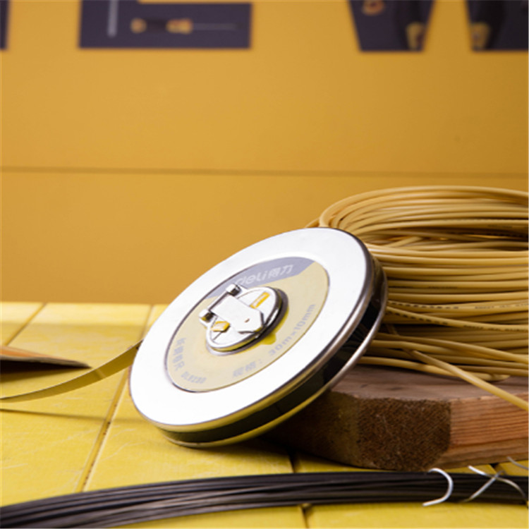 得力長鋼卷尺隱藏式搖桿,使用方便;金屬不銹鋼外殼,美觀耐用。