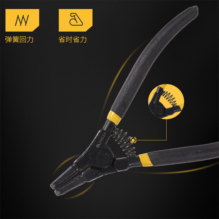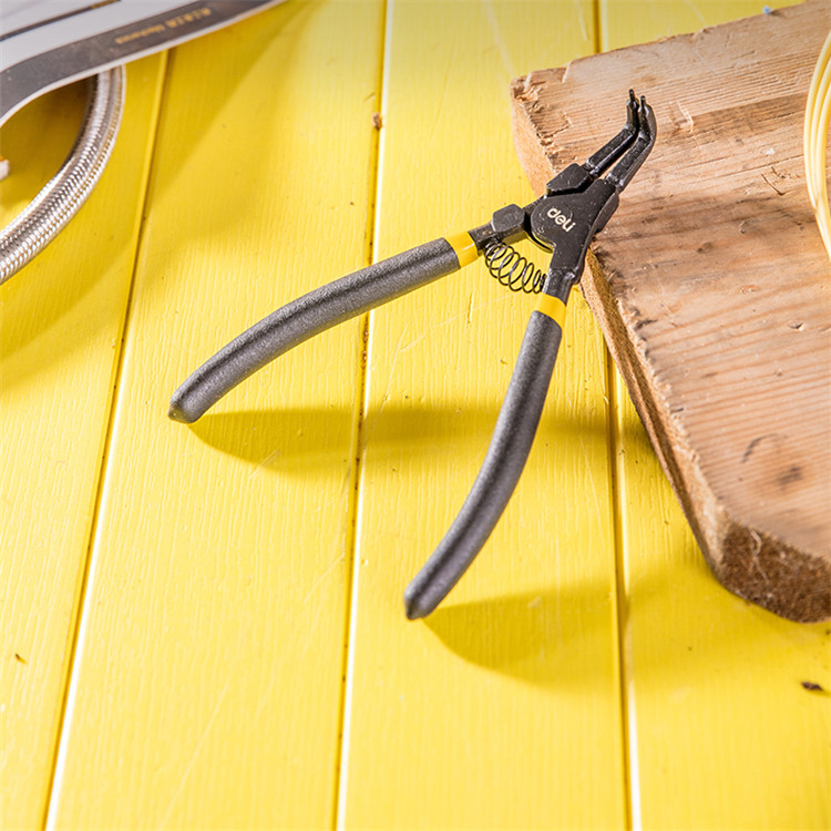 得力外彎卡簧鉗鉗頭采用50#鉻釩鋼精工鍛造,精工細作,閉合緊實