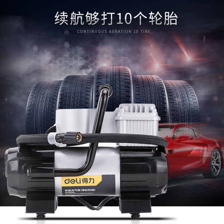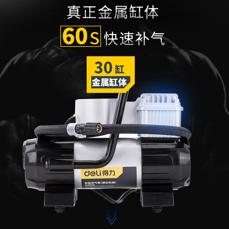得力deli 車(chē)載充氣泵預(yù)設(shè)胎壓金屬雙缸便攜式12v打氣泵 帶燈可測(cè)