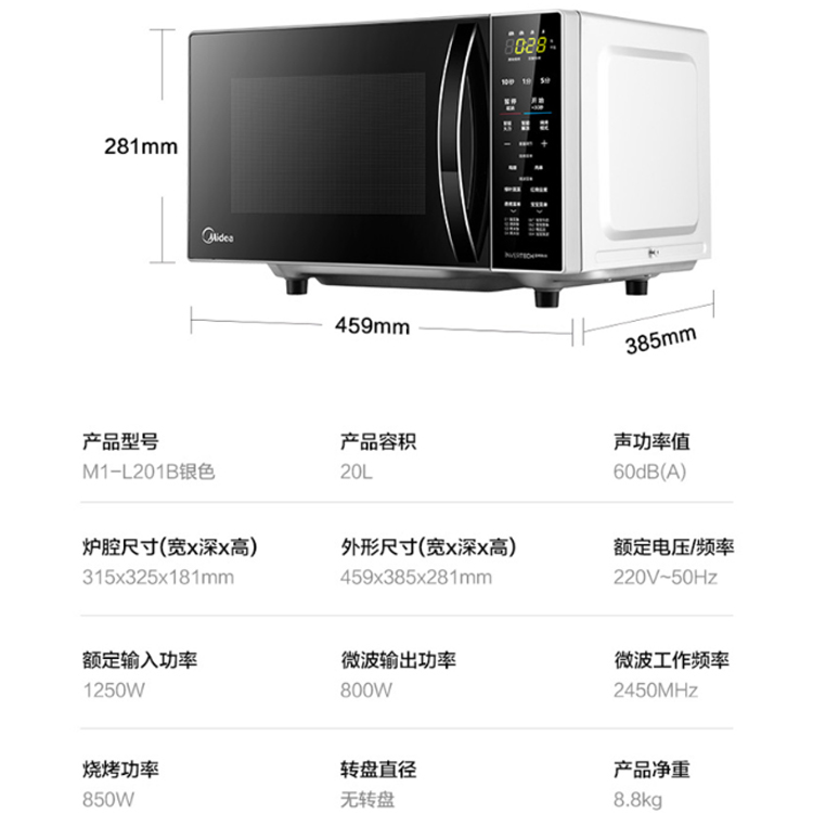 美的(Midea)M1-L201B升級款 變頻微波爐 光波燒烤電烤箱一體機(jī) 智能解凍 20升
