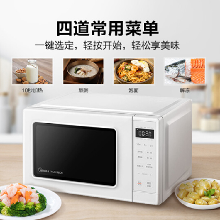 美的變頻微波爐四道常用菜單,一鍵選定,輕松享美味。