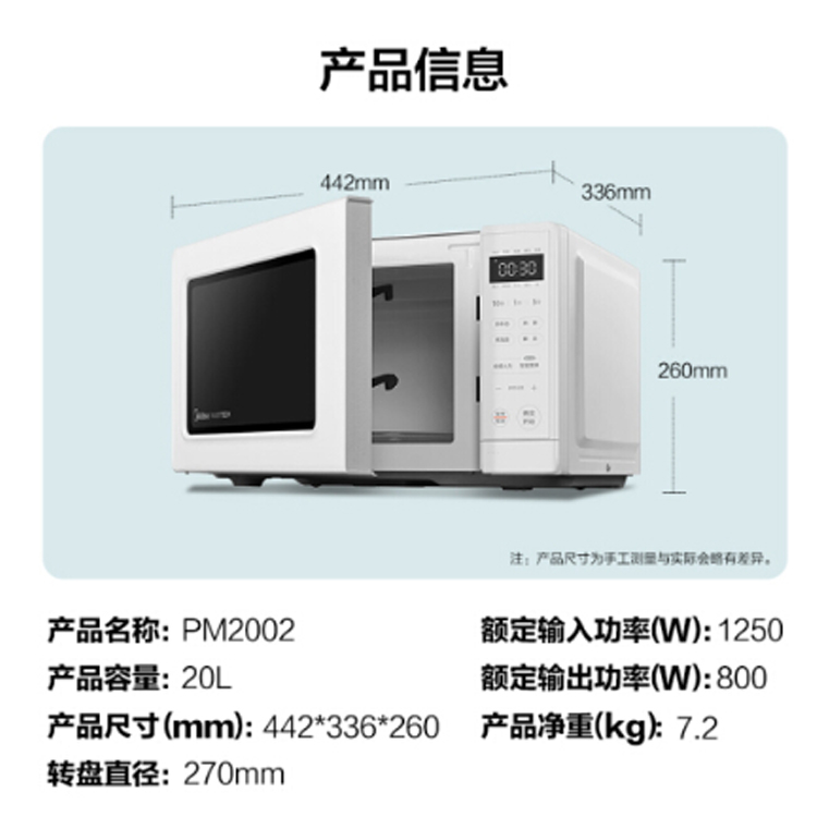 美的(Midea)PM2002 變頻微波爐 家用轉(zhuǎn)盤(pán)微波爐 變頻解凍一級(jí)能效一鍵菜單