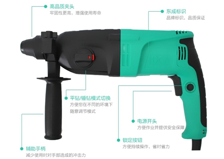 東成電錘多用錘一機(jī)兩用,電鍾電鉆二合一,機(jī)身緊湊,輕巧便利,機(jī)動(dòng)靈敏,鉆孔