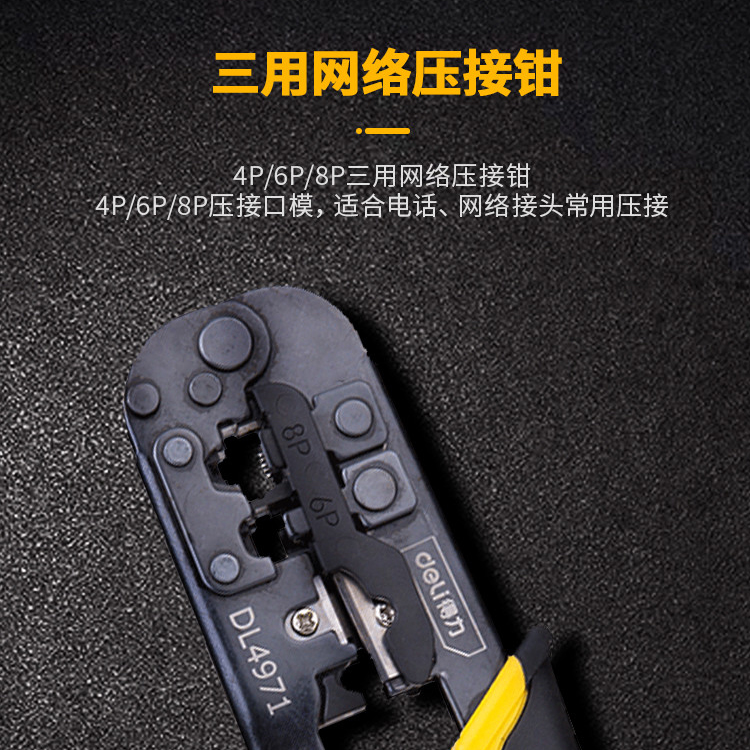 得力棘輪網(wǎng)絡(luò)DL4971網(wǎng)線鉗A3鋼鉗套裝網(wǎng)絡(luò)水晶頭壓接壓線鉗