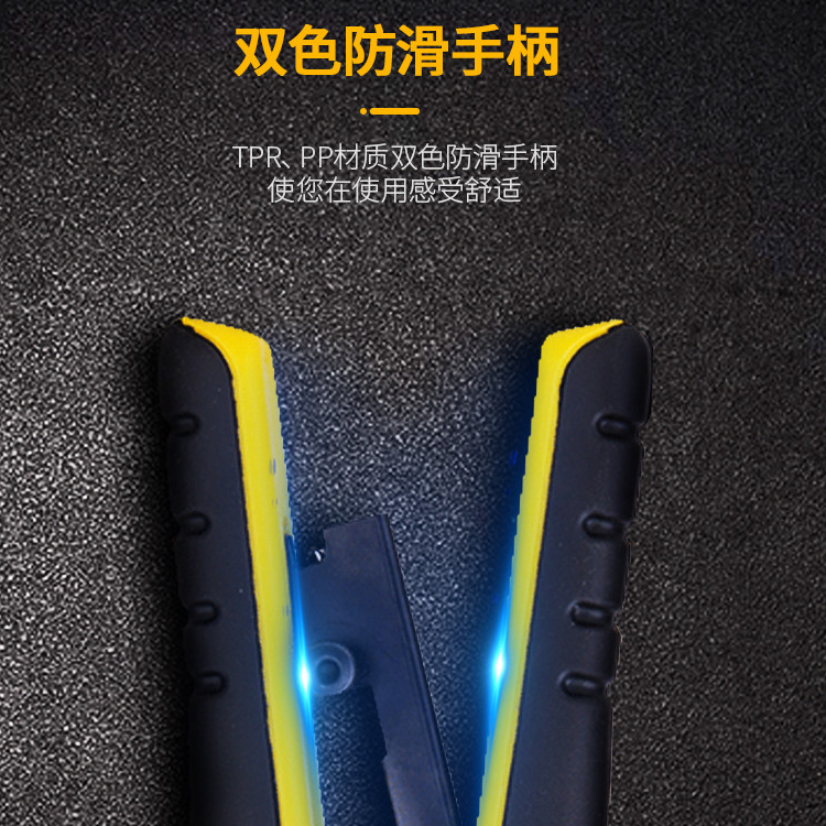 棘輪網(wǎng)絡(luò)鉗刀片采用SK5鋼制作,堅(jiān)硬鋒利,剝線順暢