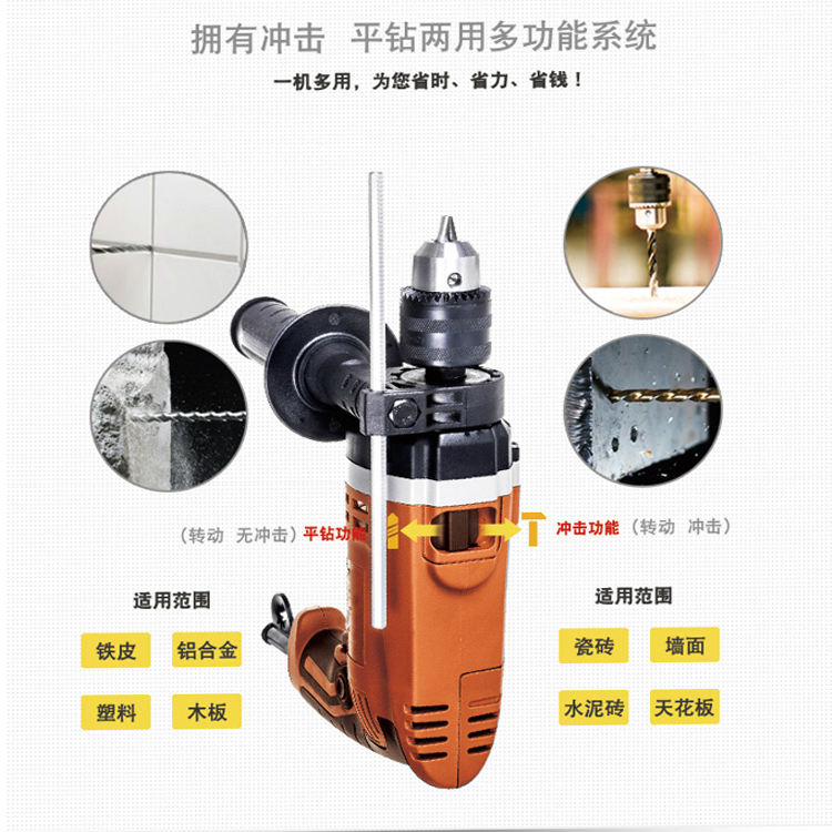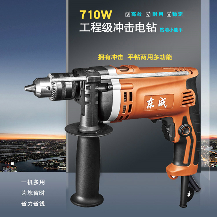 東成沖擊電鉆DZJ710-16適用于對混凝土地板、墻壁、磚塊,石料