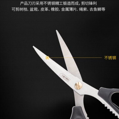 得力家用強(qiáng)力剪刀不銹鋼DL2613多功能廚房,產(chǎn)品適用于剪切30mm以下的樹(shù)枝。