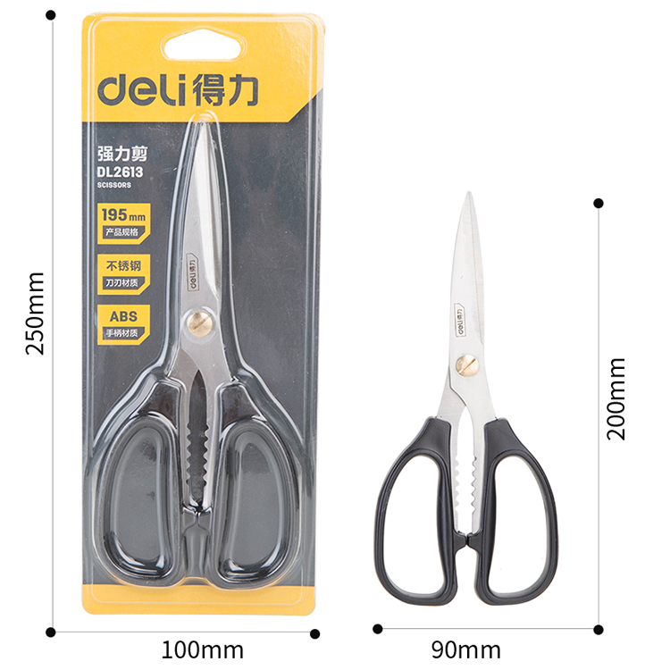 得力家用強(qiáng)力剪刀不銹鋼DL2613多功能廚房,ABS工程塑料注塑手柄,握感舒適。