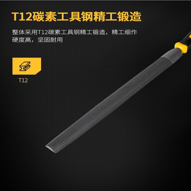 中齒半圓銼產(chǎn)品銼身采用T12工具鋼,銼齒表面特殊熱處理涂層,經(jīng)久耐用。