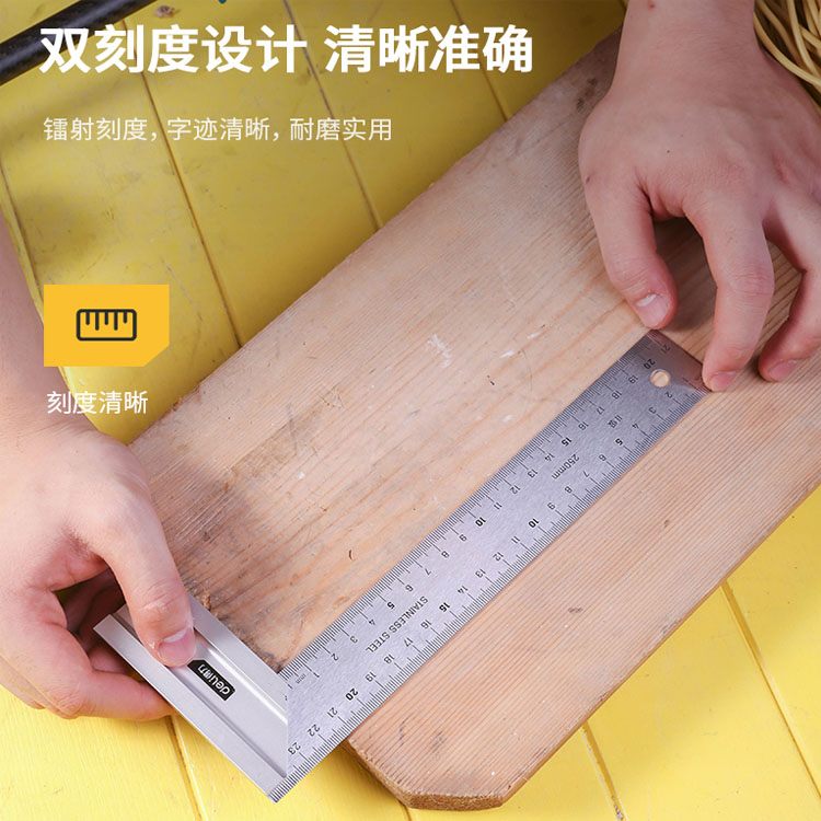 角尺尺身雙刻度設計 字跡清晰 耐磨實用