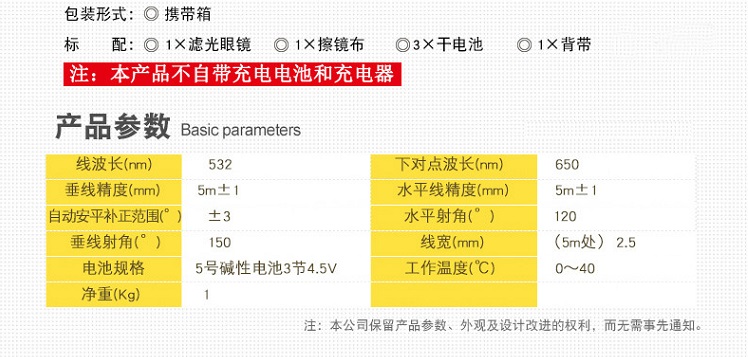 東成水平儀綠光高清度強光室外FF04-21兩線三線五線投線儀基本參數(shù)