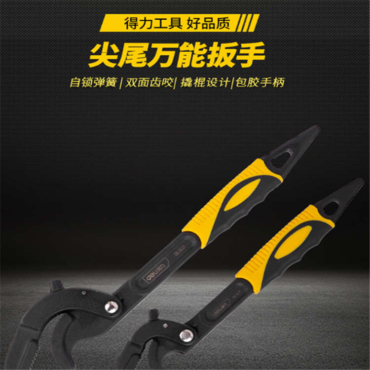 得力尖尾萬能扳手包膠手柄,防滑耐磨。