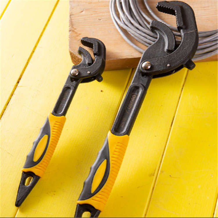 得力尖尾萬能扳手(黃)快速開口管鉗套裝搬板手