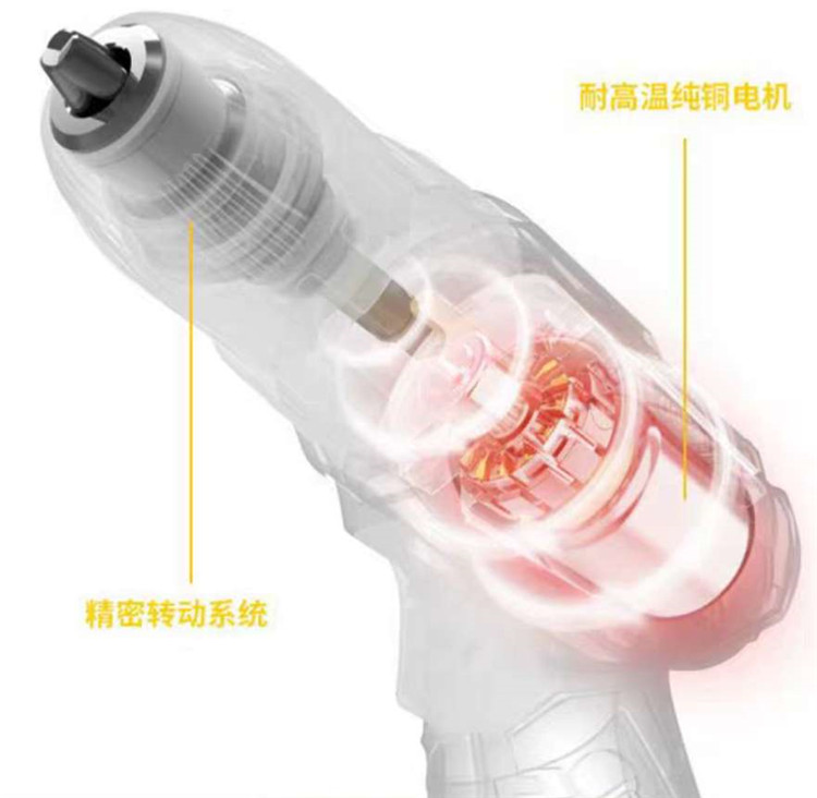 手電鉆內芯耐高溫純銅電機配合精密轉動系統(tǒng)為鋰電鉆提供澎湃的動力 可降低損耗 提高動力