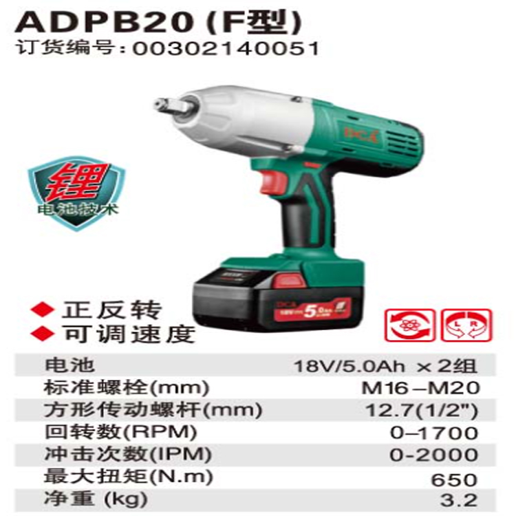 DCA充電式?jīng)_擊扳手ADPB20(F型)耗電量少、噪聲小、調(diào)節(jié)靈活、