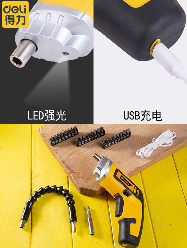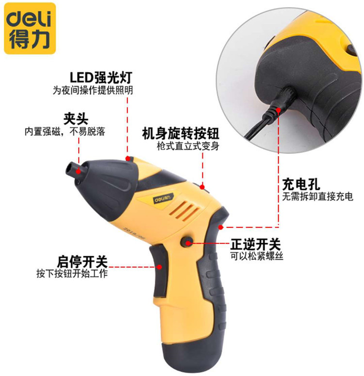 得力電動(dòng)螺絲批手電鉆迷你小型鋰電家用充電式螺絲刀起子工具套DL4DL6521