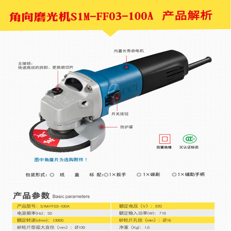 東成角向磨光機S1M-FF03-100A自鎖開關(guān)設(shè)計輕松應(yīng)對長時間打磨工作。便捷式
