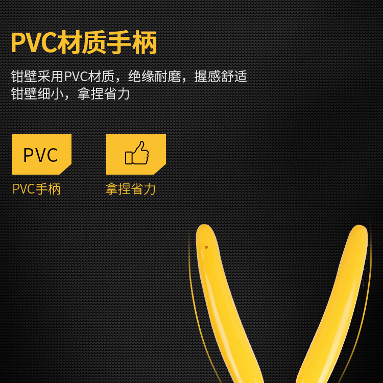 剪切鉗手柄鉗壁采用PVC材質(zhì),絕緣耐磨,握感舒適鉗壁細(xì)小,拿捏省力