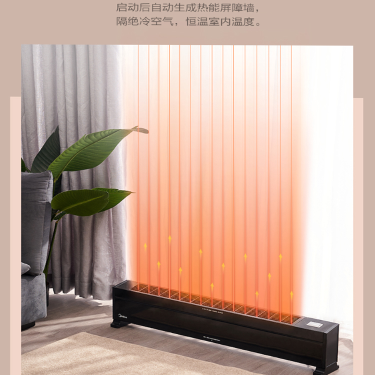 美的(Midea)地暖器啟動后自動生成熱能屏障墻,隔絕冷空氣。