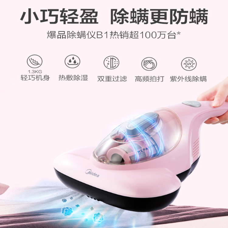 美的(Midea)B1家用床上除螨儀 10Kpa大吸力 除菌螨率99.99% 小型手持吸塵器