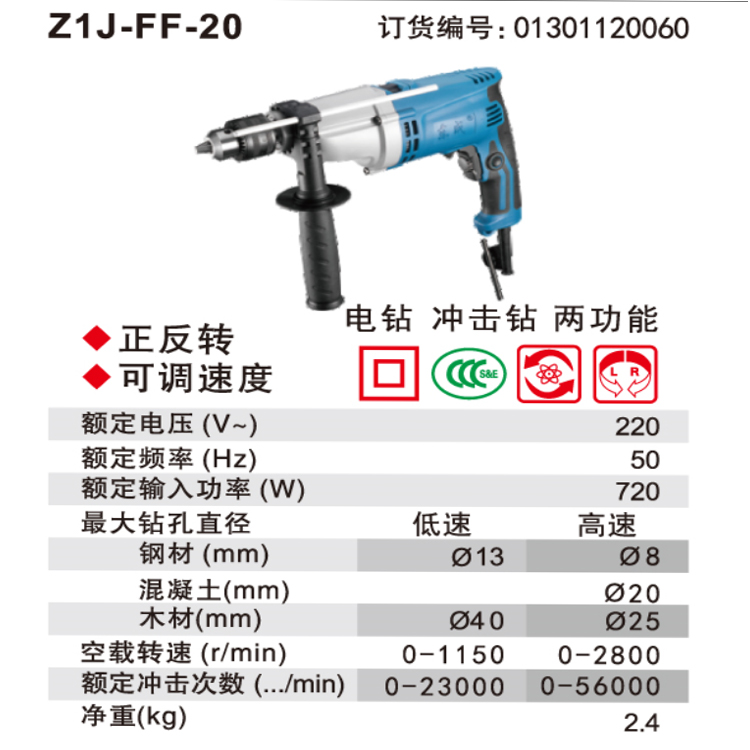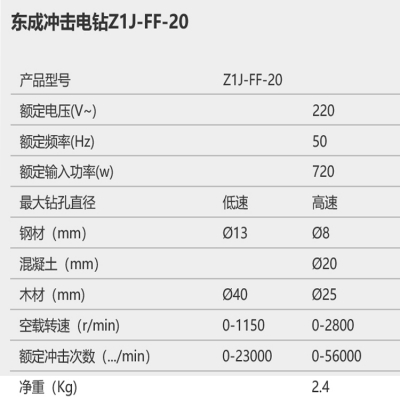 東成沖擊電鉆Z1J-FF-20功率電機,純銅絲繞組線圈,動力更強