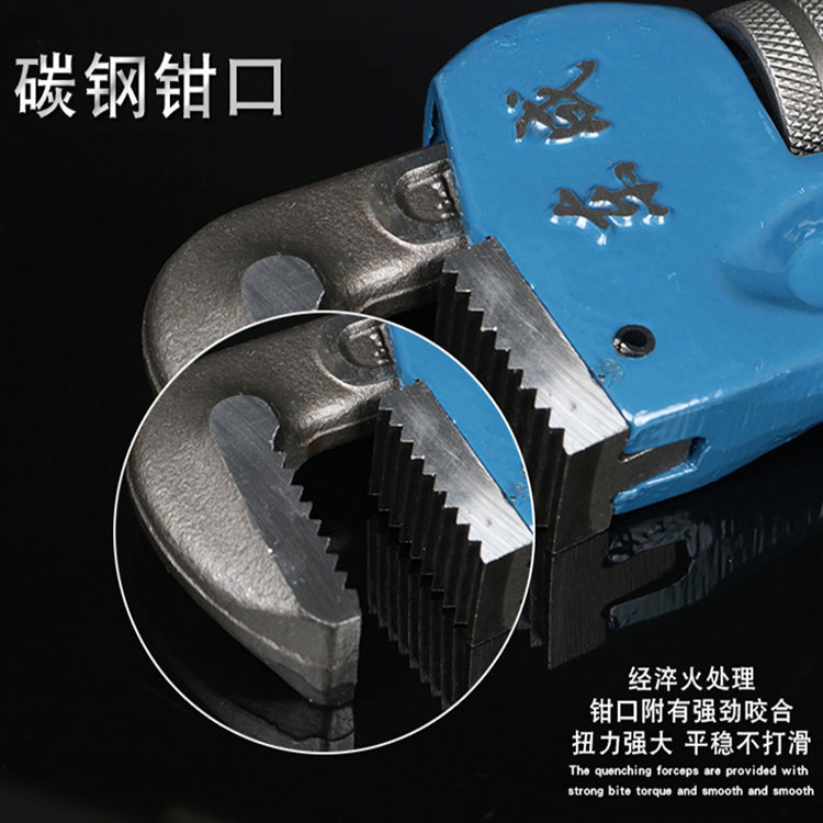 經(jīng)淬火處理,鉗口附有強勁咬合,扭力強大,平穩(wěn)不打滑。
