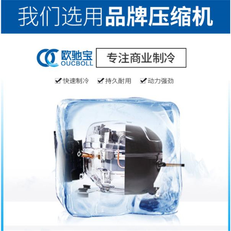 歐馳寶冰淇淋柜冷柜采用134a/R290R雙壓機(jī),風(fēng)冷散熱,噪音低,制冷效果好