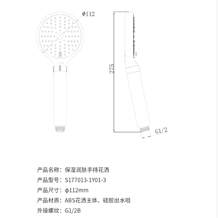 保濕潤膚手持花灑S177013增壓出水,暢享震撼沐浴體驗(yàn)激光針孔面板,出水強(qiáng)勁,酣暢淋漓