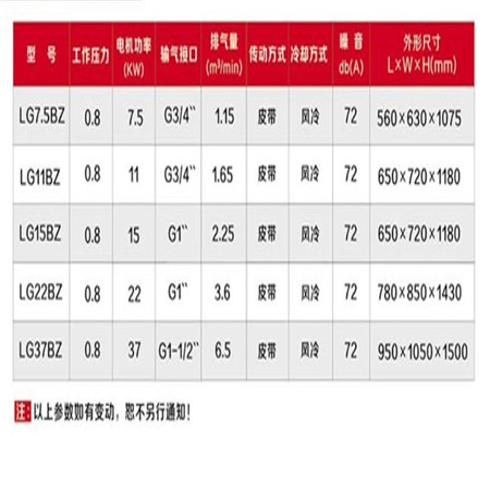 紅五環(huán)LGBZ系列固定式螺桿空氣壓縮機(jī),參數(shù)表