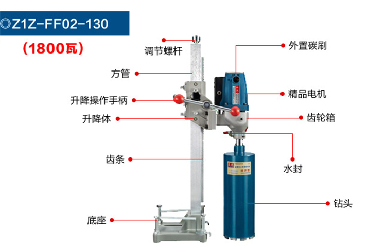 東成金剛石鉆孔機(jī)精品電機(jī)提供強(qiáng)勁動(dòng)力,使用壽命長。平穩(wěn)升降鉆頭受力均勻工作
