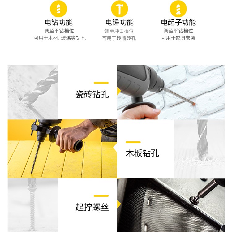 電錘實(shí)時(shí)孔深,深度尺預(yù)調(diào)打孔深度,避免打孔過深或打穿墻壁。