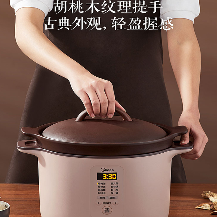 美的(Midea)電燉煲胡桃木紋理提手,古典外觀,輕盈握感。