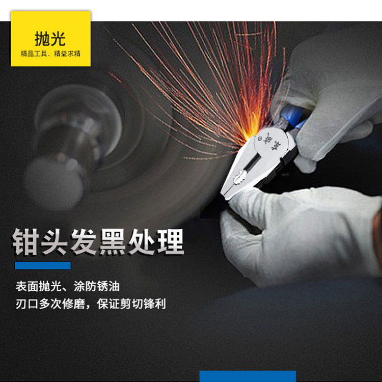 鋼絲鉗表面拋光、涂防銹油,刃口多次修磨