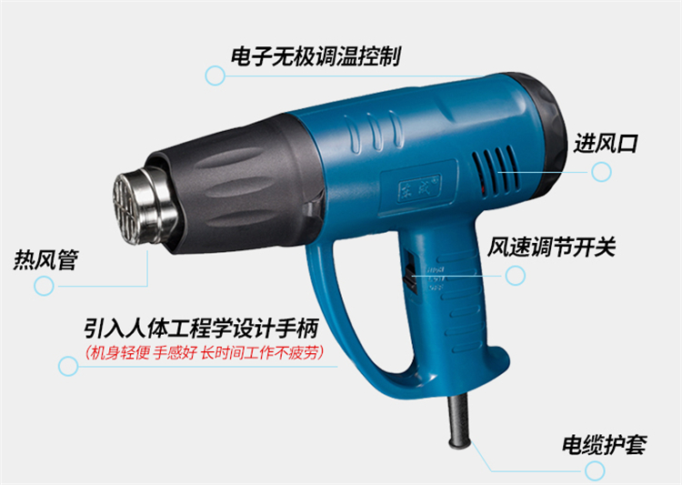 東成熱風(fēng)槍無極調(diào)風(fēng)調(diào)溫,耐用防摔設(shè)計,全鋼聚熱風(fēng)嘴,兩檔調(diào)節(jié)開關(guān),檔位清