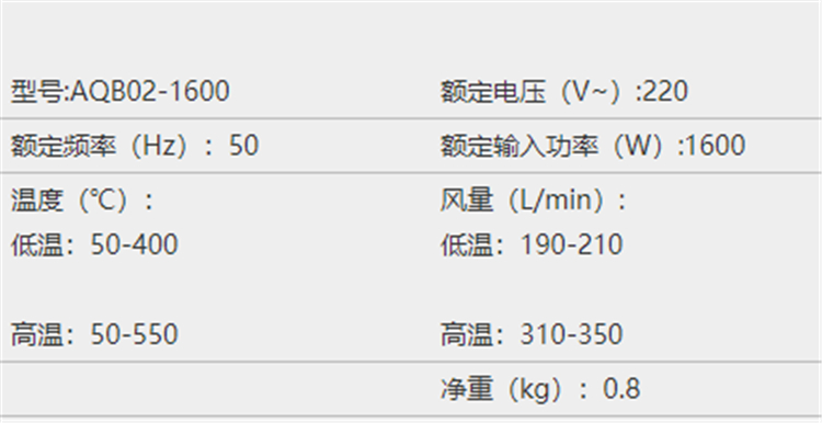 東成熱風(fēng)槍基本參數(shù)圖