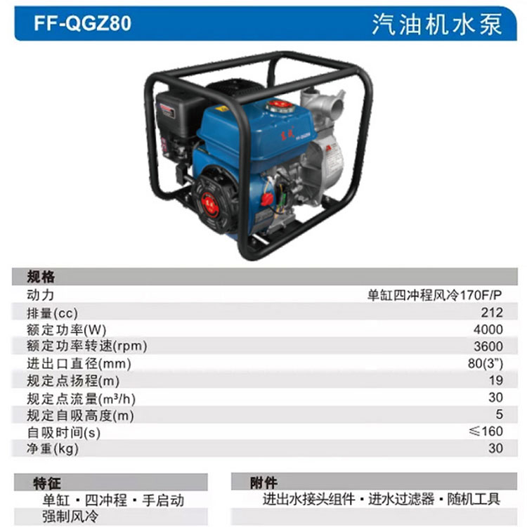 自吸快,揚(yáng)程高,流量大,油耗低。