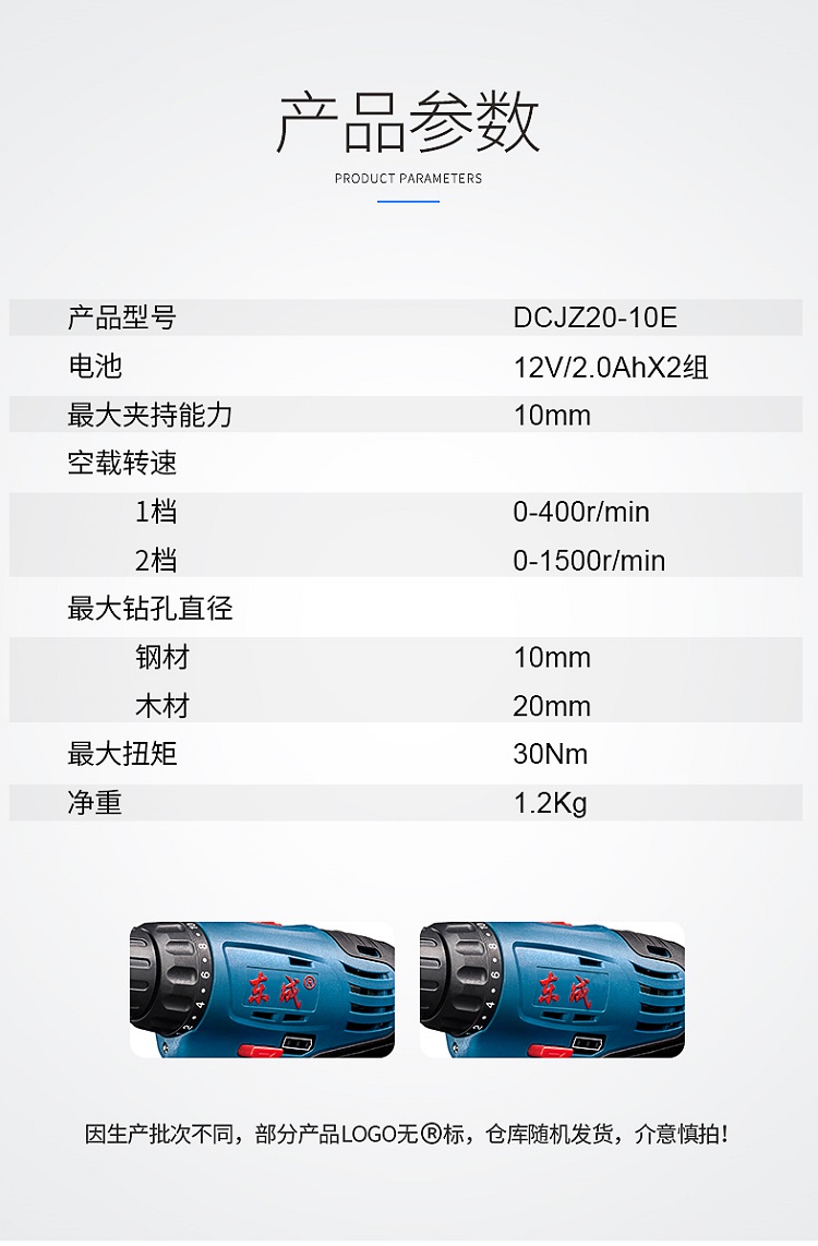 東成手電鉆 DCJZ20-10E 12V兩電一充電式起子電鉆一機(jī)多用,電力持久