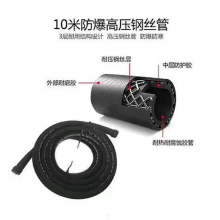 高壓清洗機10米防爆高壓鋼絲管,3層耐用結(jié)構(gòu)設計高壓鋼絲管防爆肪寒