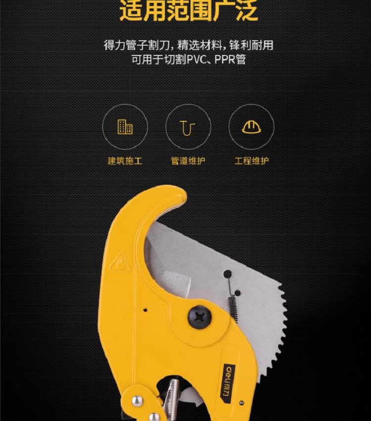 得力管子割刀刀片采用不銹鐵,經(jīng)淬火處理,切削鋒利。
