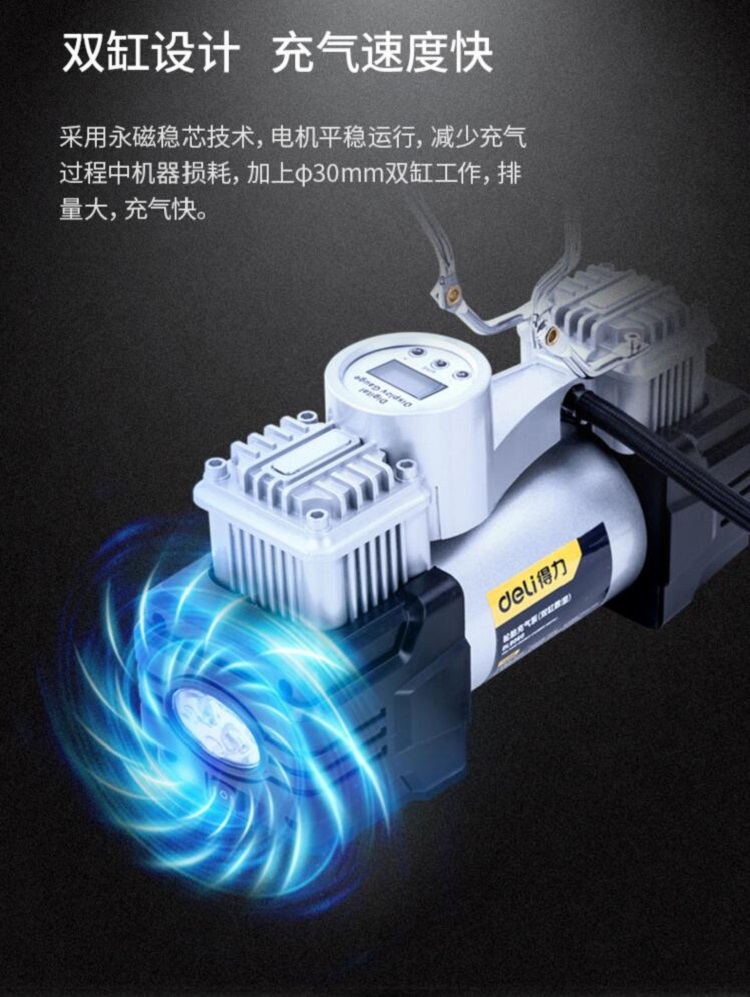 得力工具車載充氣泵汽雙缸便攜式小轎車大功率汽車輪胎充氣打氣泵