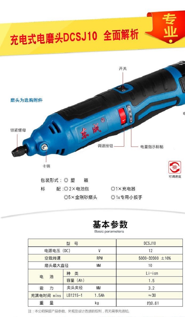 東成充電式電磨頭DCSJ10(A型) 可調(diào)速內(nèi)孔機(jī)直磨機(jī)電磨打磨機(jī)工具基本參數(shù)