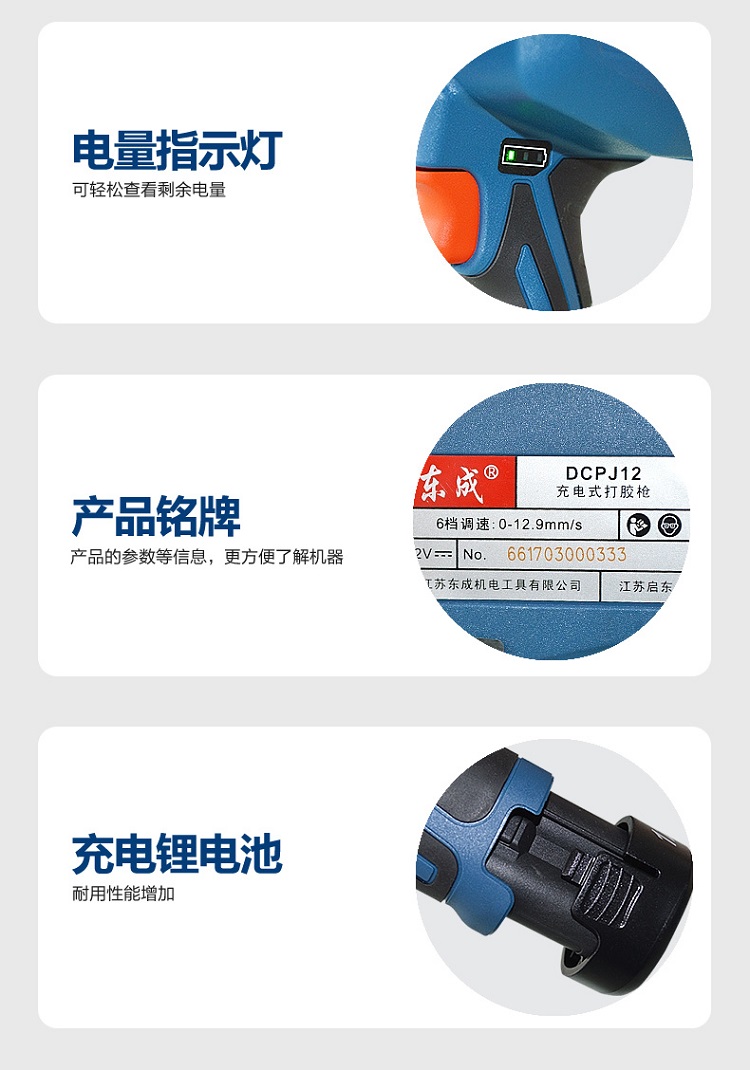 東成DCPJ12(A型) 充電式打膠槍東成工具可提醒電量,是鋰電池性能好