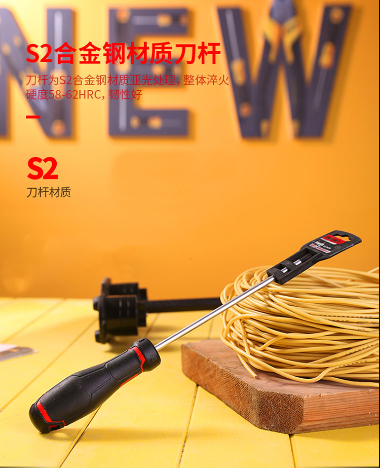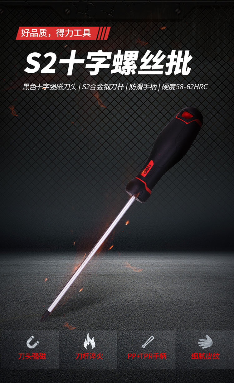 黑色十字強(qiáng)磁刀頭|S2合金鋼刀桿|防滑手柄|硬度58-62HRC