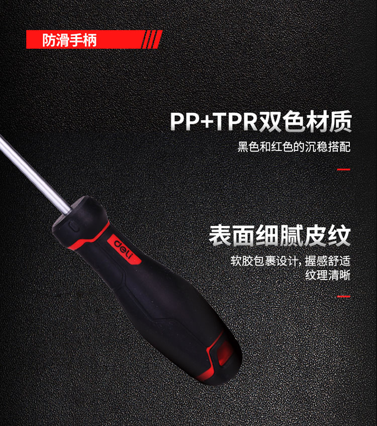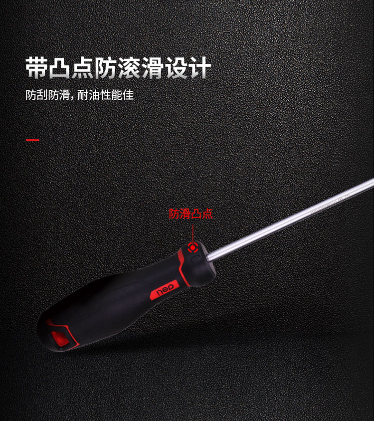 橡塑雙材料手柄,表面有精致花紋,握柄前端防轉(zhuǎn)凸點(diǎn)設(shè)計(jì),