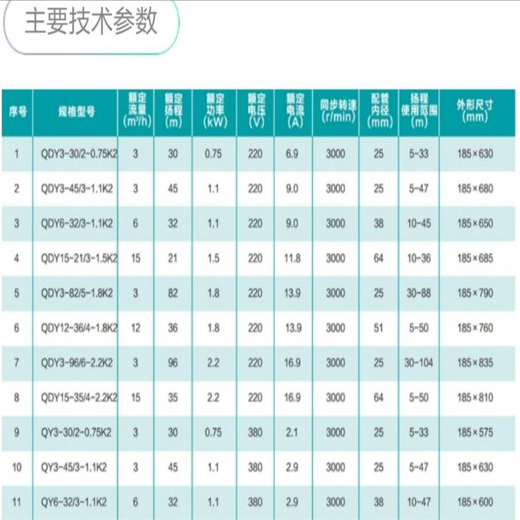 新界巨能芯型多級(jí)潛水電泵參數(shù)圖