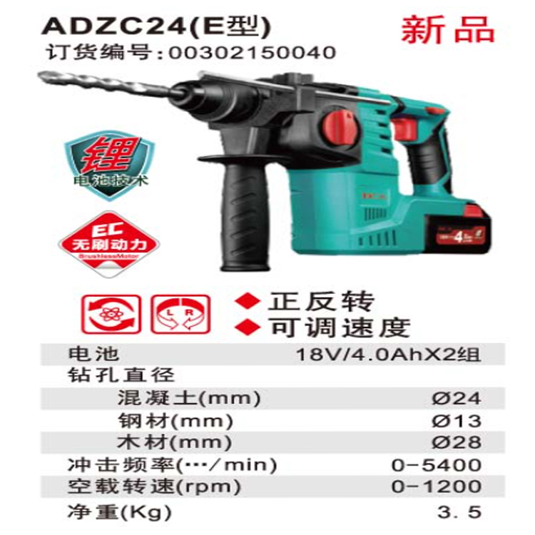 DCA充電式電錘ADZC24(E型)是用來在混凝土、磚、石頭等硬性材料上開孔的。
