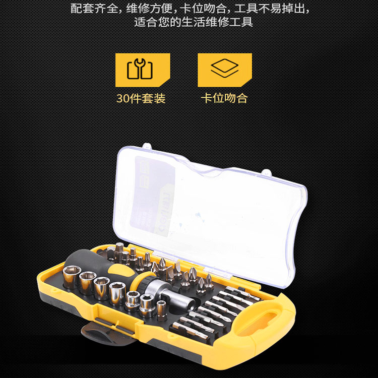 得力工具DL1130棘輪螺絲刀螺絲批組套家用套筒30件套多功能
